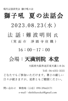 「現代法話研究会・獅子吼の会」では、下記の通り「獅子吼報恩講」を勤修いたします。