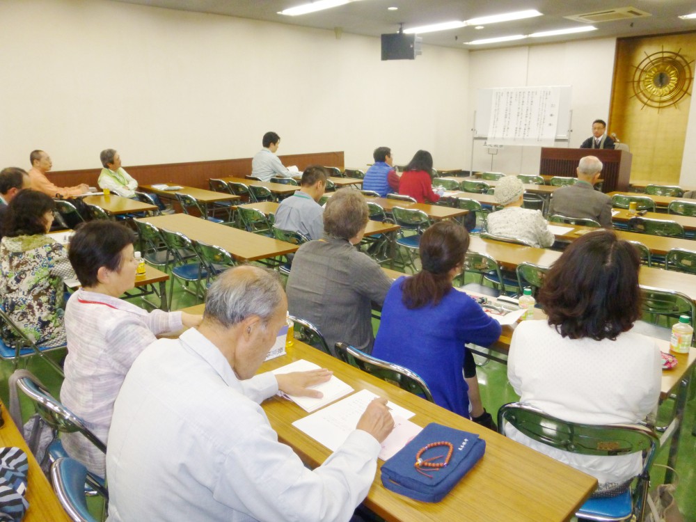 さる5月12日(火)、継続聞思の会では、南御堂難波別院を会場に「宗祖親鸞聖人に出遇う入門講座~『歎異抄』に聞く~」(後援:真宗大谷派難波別院)を開催いたしました。当日は台風の近づく悪天候にもかかわらず、たくさんの方々のご参加を賜り、本当に有難うございました。また、はじめてご参加をいただきました皆様、本当にようこそお越し下さいました。