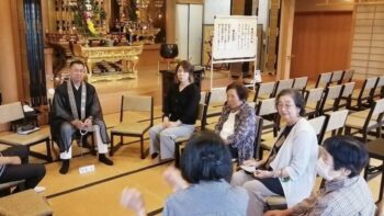 「生きる意味」―ほんとうにそれでいいのか―をテーマに、本年度1回目の座談会。新しいご門徒も参加し21名で開催されました。