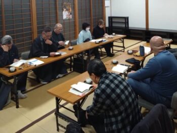 17組寺族研修会で、第2回目となった親鸞仏教センター「現代語訳 歎異抄」の輪読会を行いました。今回は『第一条』の箇所を読み進めました。本書は、歎異抄を現代語訳をするにあたって、研究員たちが話し合い討論して、現代語訳を作り出している形式になっています。そんな中みんなの興味を引いたのは「往生」の訳が「新しい生活を獲得できる」としているところでした。現世往生なのか、死後往生なのかという論争もある中、「苦しみの娑婆を生き生きと生きられる力を浄土からいただく」と考えて「新しい生活」と訳したことに清々しさを感じました。輪読もそうですが、みんなで語り合い、確かめ合い、教え合うことがとても楽しく感じる会となりました。