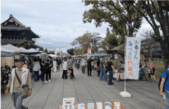 この日は東本願寺前の「お東さん広場」で手づくり市が開かれており、賑わいの中での参拝となりました。