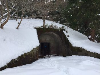 『関ケ原鍾乳洞から車で2、3分進むと玉の火薬庫跡があります。火薬庫の正式名称は「名古屋陸軍兵器補給廠関ケ原分廠」でした。明治末期から大正初期にかけて建設されました。関ケ原が選ばれた理由は、東海道本線に近く交通の便がよく、付近に民家もない。また、地形的に小高い山が点在し土塁の構築に適していたからだそうです。洞窟式火薬庫は小山を掘り、内部にコンクリートを流し、上部は山土で覆った後、植栽し山林のようにカムフラージュしたそうです。そのため、最後まで空爆を受けることなく残りました。終戦後、進駐軍は「玉の火薬庫」の存在に驚いたと伝えられています。(関ヶ原観光WEBより)』