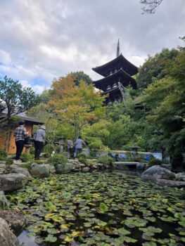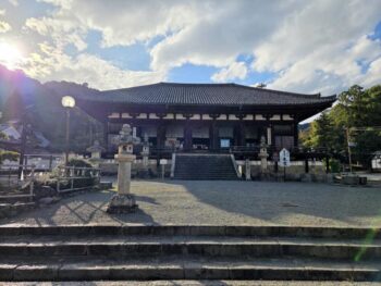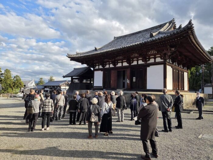 同朋会館でお斎(ぎんなん粥)をいただき、ご門首をお見送りした後、當麻寺(たいまでら)へ向かいました。