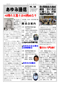 あゆみの会(第2組同朋の会推進員連絡協議会/浪花 博会長)の機関誌『あゆみ通信』(編集:本持喜康事務局長)の第104号(2017年8月1日号)が発行されました。