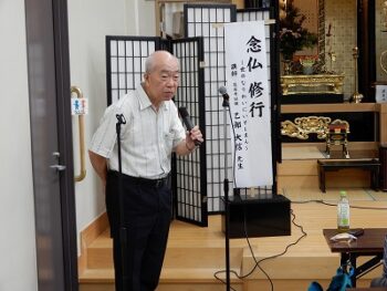 そして乙部大信先生(第3組 恩楽寺住職)を講師にお招きし、「念仏修行~世のなりわいにいそしまん」と題してお話をいただきました。
