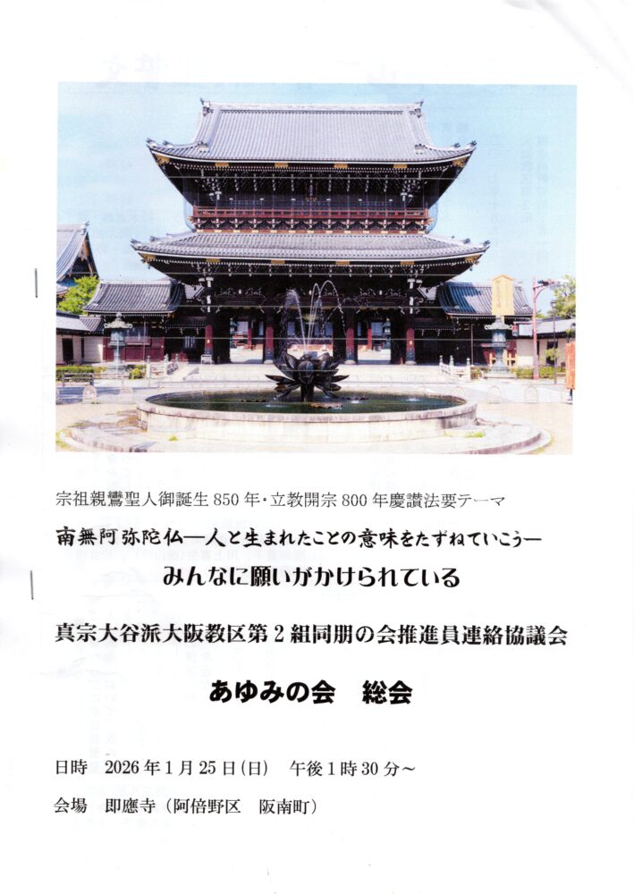 2026年1月25日(日)午後1:30より、大阪市阿倍野区の即応寺にて「あゆみの会」の総会を開催しました。