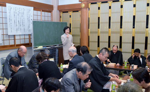 2014年11月14日(金)午後5時半から、今年の第2組仏事の集約である報恩講が即應寺(藤井善隆住職)で、多数のご門徒と組内の寺族が集まって、にぎやかに力強く厳修。法話は「救いとは」を講題として、大橋恵眞先生(柏原市遠慶寺住職)からいただき、お斎をいただきながら併せて同朋総会を行圓寺坊守さんの司会で進み、ご門徒からの発言があって最後に第2組門徒会長の閉会の言葉で締めくくられた。 記事、写真はあゆみの会(第2組同朋の会)の「あゆみ通信」からの転載です。